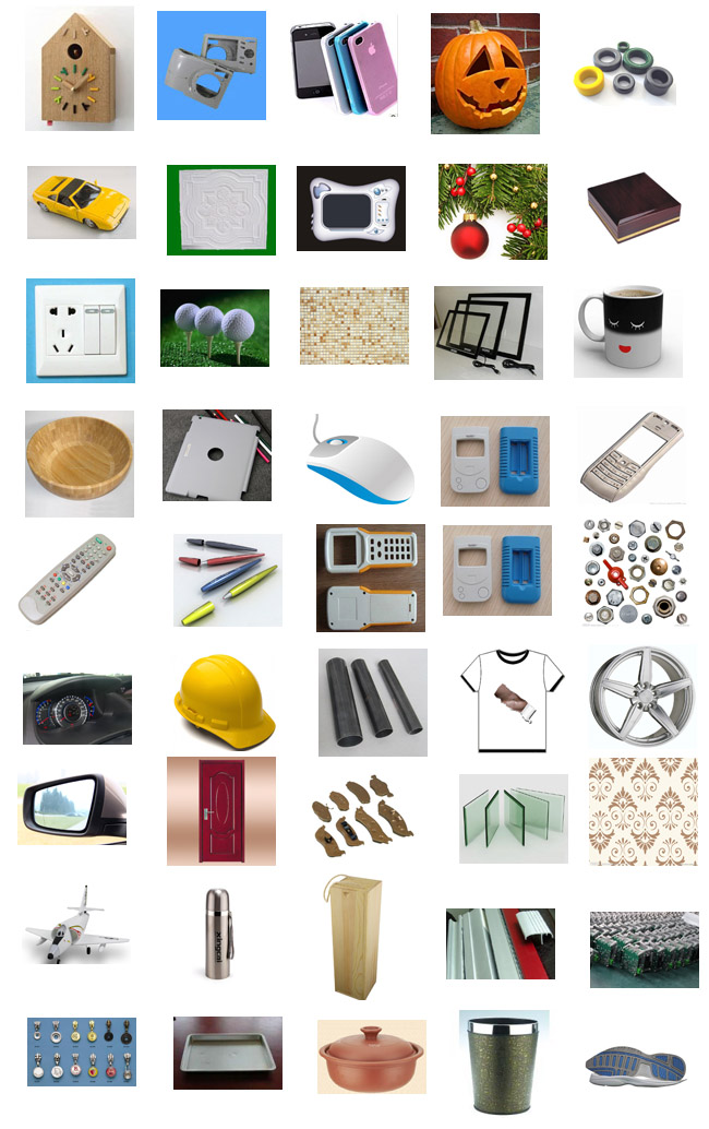 相機(jī)鏡頭、筆記本外殼、音響外殼喇叭、收音機(jī)、電視機(jī)、遙控器、插座、LED手電筒、DVD、鼠標(biāo)、鍵盤、耳機(jī)、燈具等;
